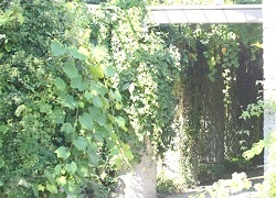Zwischenzeitlich ist es zu einem Selbstbedienungscafé umgebaut worden. Das Dach ist mit wildem Wein bewachsen, dessen Blätter spätherbstlich braunrot gefärbt sind.