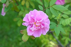 Es ist die Apfelrose Rosa Rugosa ‚Thérèse Bugnet‘, die mehrmals im Jahr blüht und sehr naturnah wirkt, wie man uns versichert.