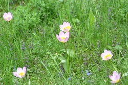 „Sie sollten Wildformen wählen“, fährt Herr Gregori ungerührt fort. „Wildkrokusse, Märzenbecher und Muscari. Und hier in die Blumenwiese können Sie Wildtulpen stecken.“ Er schaut auf den Flecken Wiese, in dem noch wilder Thymian und die letzten Herbstkrokusse blühen.