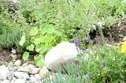 In jedes der vier Beete kommt entweder eine Prachtkerze oder ein Purpursonnenhut, die als Präriepflanzen in sandigem Boden gut gedeihen. Die überwiegende Fläche bleibt den Kräutern vorbehalten.