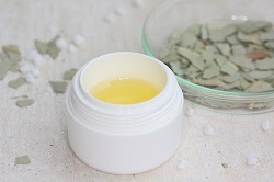 Etwas abkühlen lassen, ätherische Öle hinzugeben, vermengen. In ein Töpfchen abfüllen.