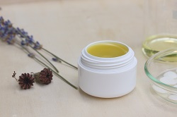 3,0 g Bienenwachs und 2,0 g Lanolin anhydrid (Wollwachs) mit 25 g Pflanzenöl